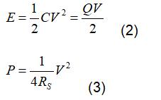 能量密度与功率密度是表征超级电容器性能的主要指标, 能量密度越大, 表示超级电容器能够储存的电能越多;功率密度越大,表示超级电容器在单位时间能够放出的能量越多,一般来讲,理想的超级电容器理论上的最大能量密度 E与功率密度 P可由如下两个公式计算: